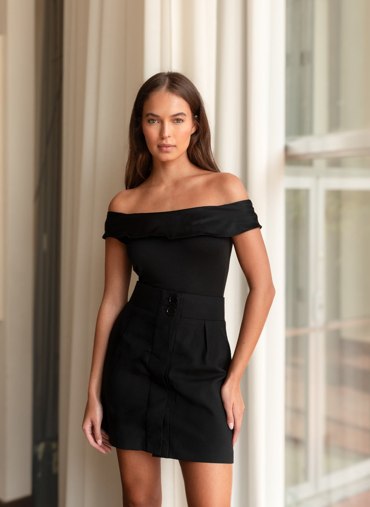 Off-the-Shoulder Jersey & Silk Bodysuit